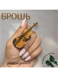 Брошь Скрипка деревянная ручная работа