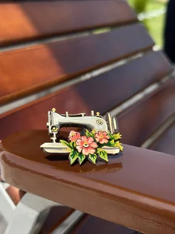 Брошь швейная машина из дерева