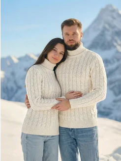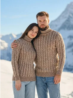 Свитер теплый с горлом пуловер вязаный больших размеров