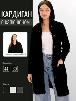 Кардиган вязаный удлиненный на пуговицах с капюшоном
