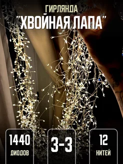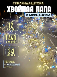 Гирлянда-штора "Хвойная Лапа 3-3 с мерцанием (1440 диодов)"