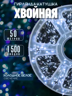 Катушка "Хвойная лапа" 50м холодный белый цвет