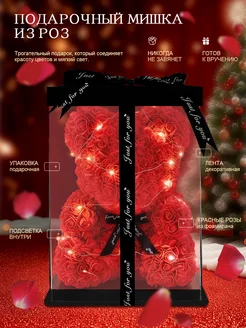 Ночник Медведь из красных роз светильник подарочный