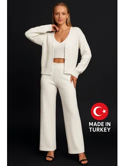 Трикотажный костюм вязаный тройка с брюками