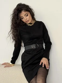 Платье праздничное повседневное мини замшевое