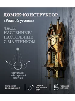 Конструктор деревянный с часами с маятником "Родной уголок"
