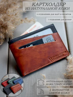 Картхолдер для двух карт, чехол для пропуска кожаный