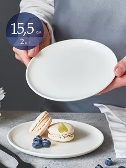 Тарелки сервировочные белые, фарфор 16 см, набор 2 шт