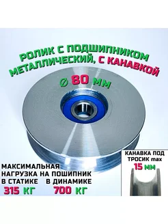 Ролик-шкив с подшипником 80х12 мм с канавкой 15 мм