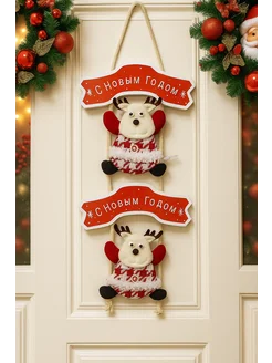 Новогодняя подвеска,венок олень на дверь,елку 55см