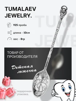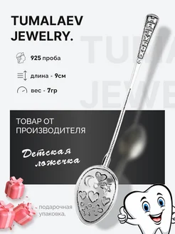 Серебряная детская ложка на зубик и крестины 925 пробы
