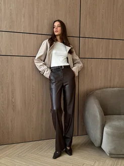 Брюки кожаные палаццо утепленные с начесом