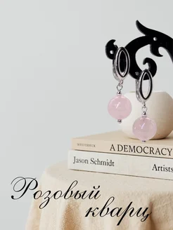 Серьги с камнем Розовый кварц 10 мм