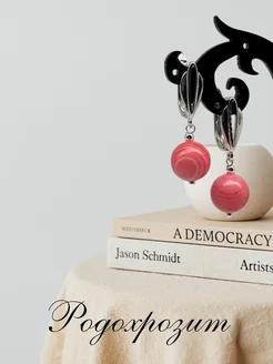 Серьги с камнем Родохрозит 10 мм