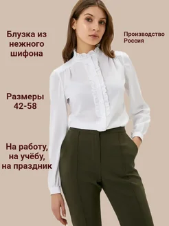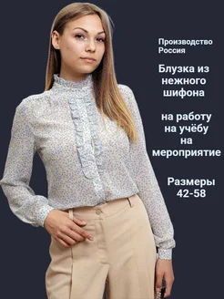 Блузка шифоновая с рюшами, c длинным рукавом, офисная