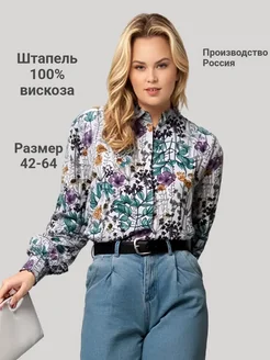 Блузка-рубашка офисная с длинным рукавом из вискозы