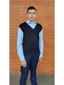Рубашка на пуговицах с жилетом школьная обманка