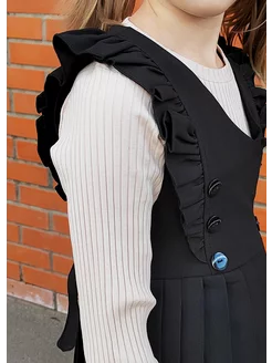 Сарафан на завязках школьный с плиссированной юбкой