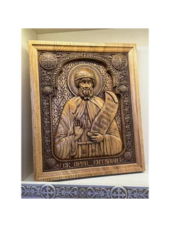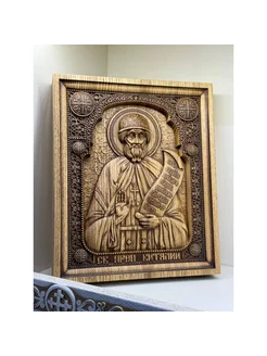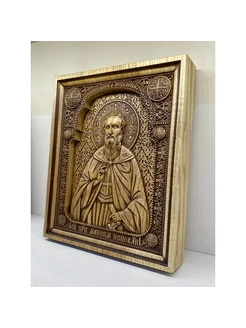 Икона резная из дерева Виталий Александрийский 19х23 см