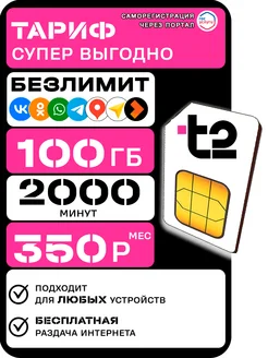 Сим карта 45гб + безлимитный интернет + 2000мин за 350