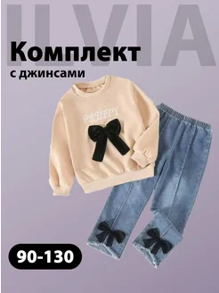 Костюм детский для девочки комплект с джинсовыми брюками