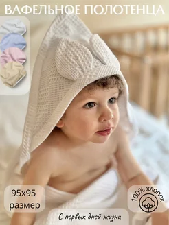 Полотенце для новорожденного детское с капюшоном с уголком