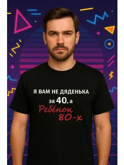 Черная футболка с приколом с принтом Я ребенок 80-х