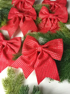 Банты на ёлку, Набор 6 шт, Ёлочные бантики новогодние