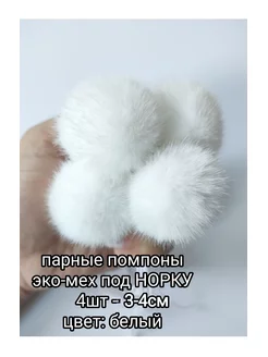 Парные помпоны, эко-мех под норку. 4шт, 3-4см
