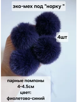 Помпоны для рукоделия, эко-мех под норку. 4шт, 4-4,5СМ