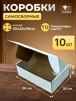 Картонная самосборная коробка 30х20х10 - 10 штук, белые