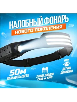 Фонарь налобный светодиодный с зарядкой датчик движения