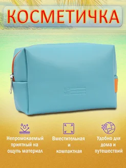 Косметичка женская дорожная на молнии для косметики голубая
