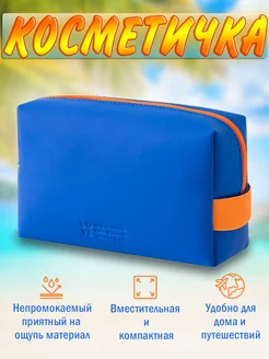 Косметичка женская дорожная на молнии синяя