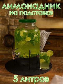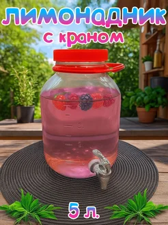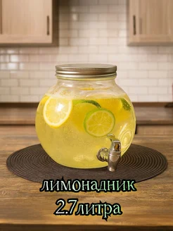 Лимонадник, стеклянная банка 3 л. Диспенсер для напитков