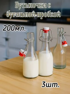 Бутылка стеклянная с бугельной пробкой 0.2 литра 3 шт