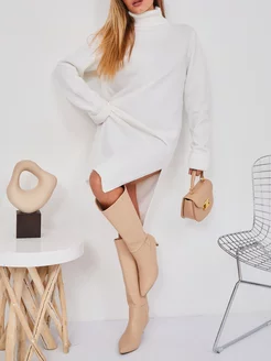 Платье теплое свитер вязаное миди оверсайз с разрезом