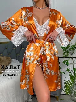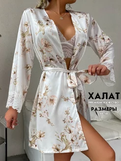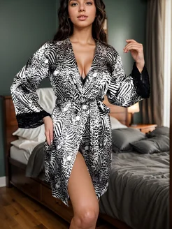 Домашний шелковый халат кимоно