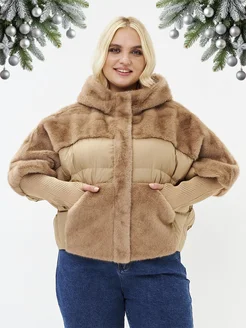 Короткая куртка пуховик на зиму с мехом большие размеры