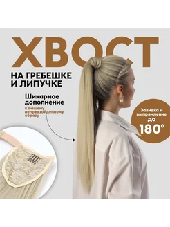 Хвост накладной, прямой волос, на резинке, 60 см, 100 гр