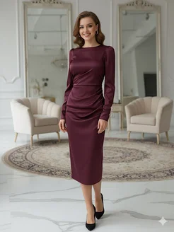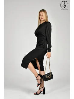 Платье вечернее миди с драпировкой праздничное на вечер