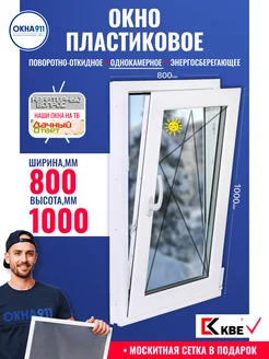 Окно пластиковое ш.800 в.1000мм КВЕ однокамерное с сеткой