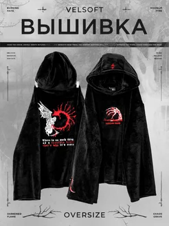 худи плюшевый оверсайз с вышивкой аниме y2k гранж archive