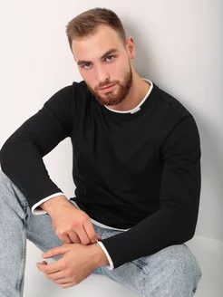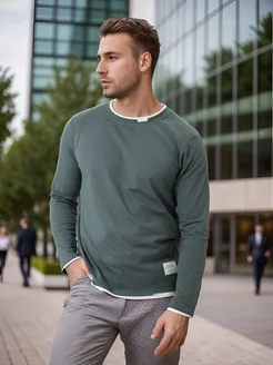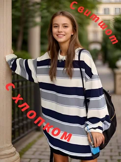Свитшот лонгслив с хлопком синий корейский японский стиль