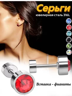 Серьги Пусеты с фианитом 6 мм Медицинская сталь