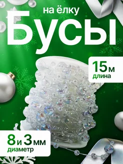 Бусы на елку прозрачные 15м елочное украшение