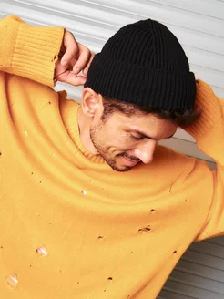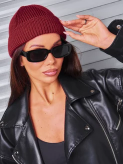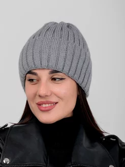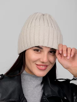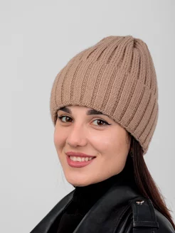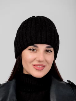 Шапка колпак бини зимняя вязаная утепленная на флисе