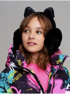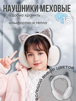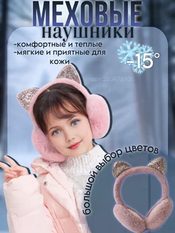 Меховые наушники для девочки с ушками утепленные