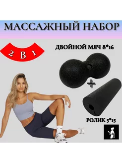 Массажный набор 2 в 1 двойной мяч + ролик для мфр