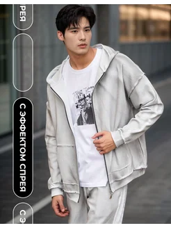 Зип худи оверсайз с капюшоном на замке варенка с принтом